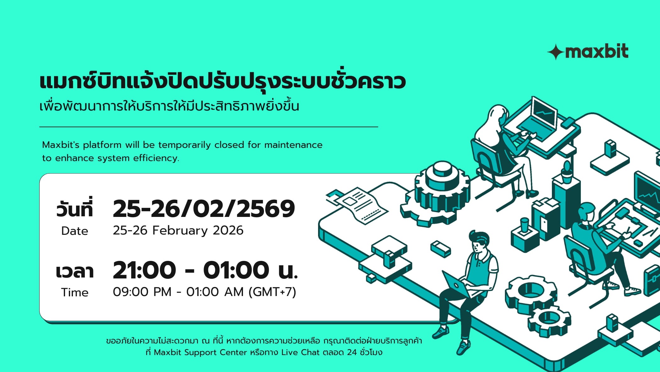 ยินดีต้อนรับสู่ Maxbit แพลตฟอร์มซื้อขายคริปโทเคอร์เรนซีและโทเคนดิจิทัล ที่มุ่งมั่นสร้างประสบการณ์การลงทุนที่เหนือระดับให้กับคุณ เราพร้อมให้บริการซื้อขายสินทรัพย์ดิจิทัลที่หลากหลายมากกว่า 100 คู่เหรียญไม่ว่าจะเป็นเหรียญยอดนิยมอย่าง BTC, ETH, Tether Gold (XAUT), PAXG, USDT และอื่น ๆ อีกมากมาย บนระบบที่มีเสถียรภาพและใช้งานง่าย ตอบโจทย์ทั้งนักลงทุนมือใหม่และมืออาชีพ
