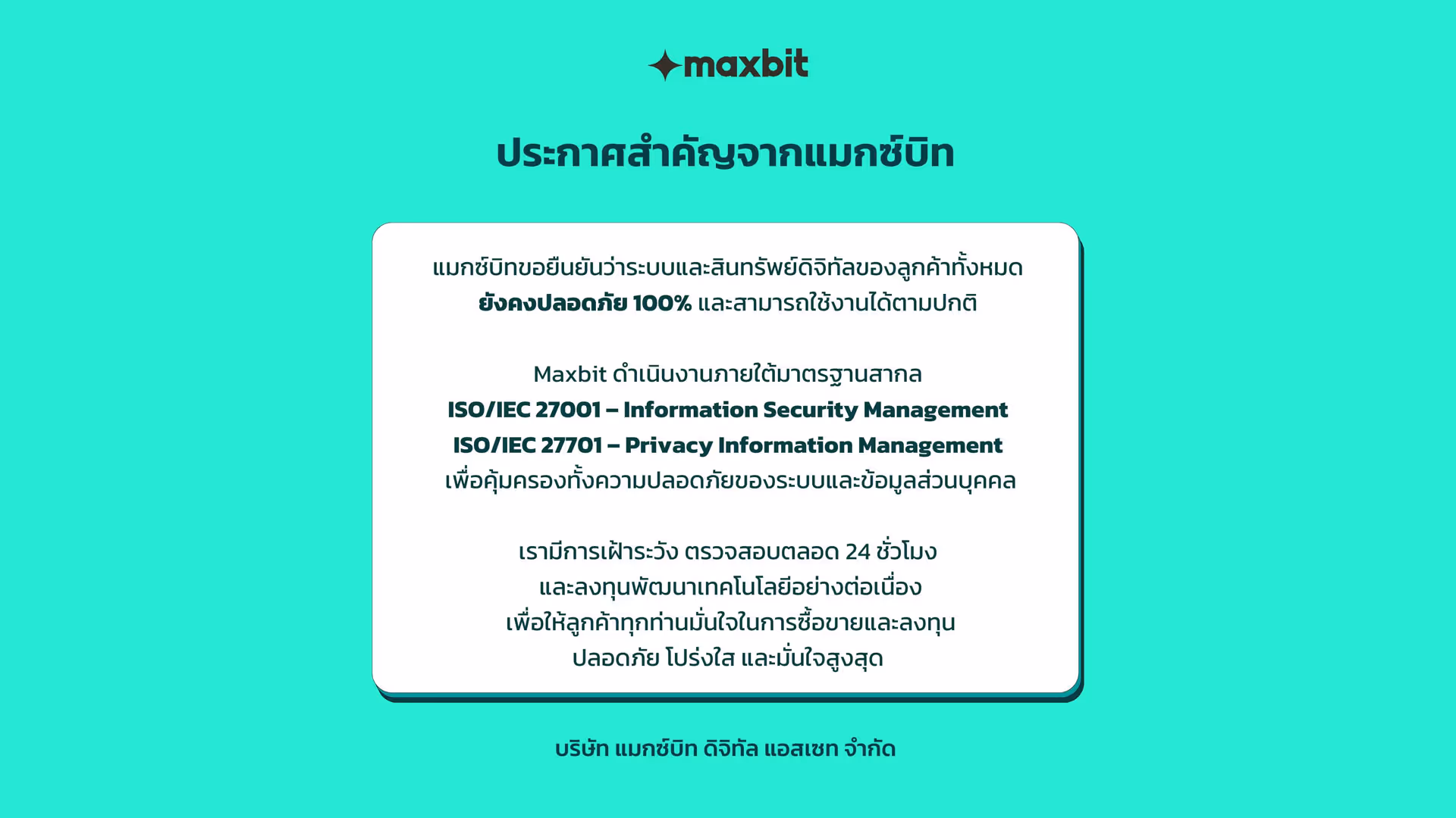 แมกซ์บิทปลอดภัยภายใต้มาตราฐาน ISO/IEC 27001 และ 27701